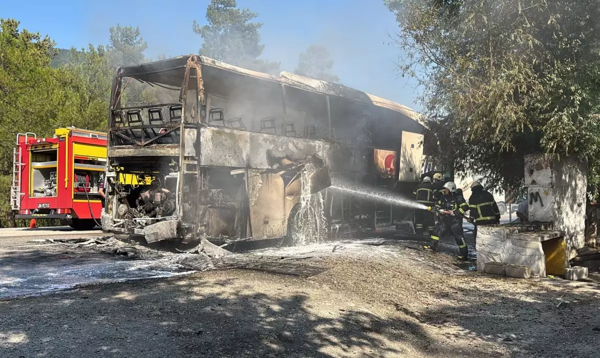 Antalya kara yolunda seyir halindeyken alev alan otobüsteki 25 yolcu tahliye edildi. İtfaiyenin müdahalesiyle söndürülen yangında otobüs kullanılamaz hale geldi.