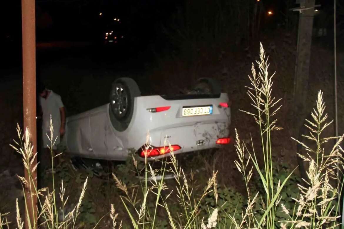 Antalya’nın Serik ilçesinde takla atan arabada bulunan şoför ve yolcu, kazadan baht yapıtı yara almadan kurtuldu.