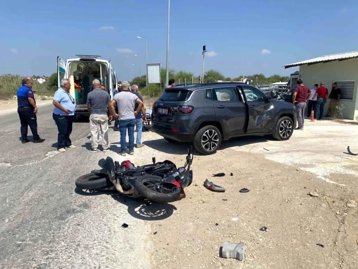 Antalya’nın Serik ilçesinde cip ile motosiklet çarpışması sonucu meydana gelen trafik kazasında motosiklet şoförü yaralandı.