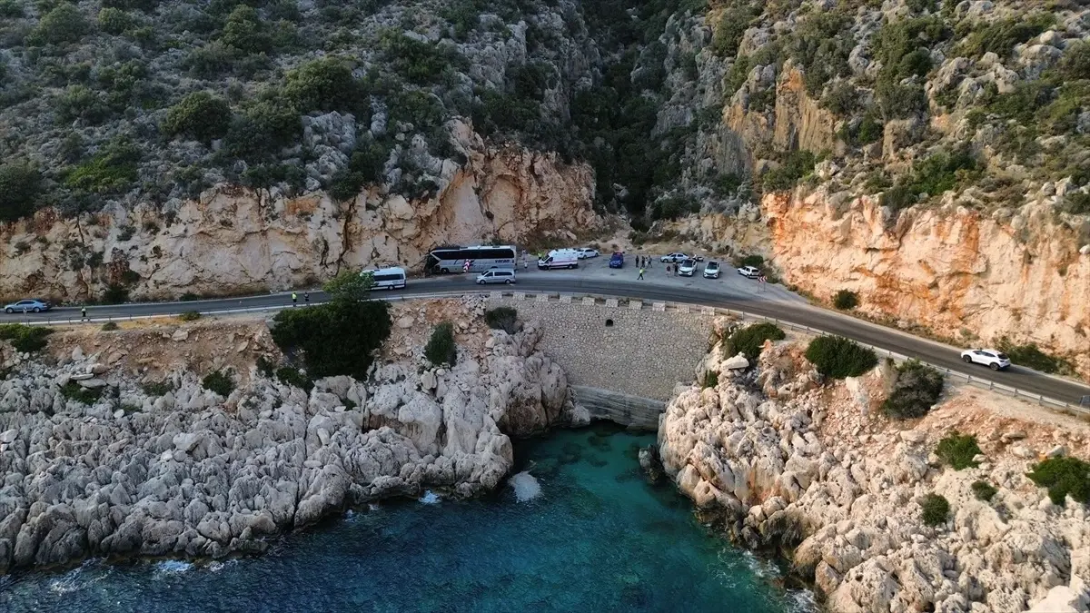 Varan Turizm firmasına ilişkin Hasan Şahin’in kullandığı 06 VT 385 plakalı otobüs, Kaş-Kalkan D-400 kara yolunda denetimden çıkarak yol kenarındaki kayalıklara çarptı.