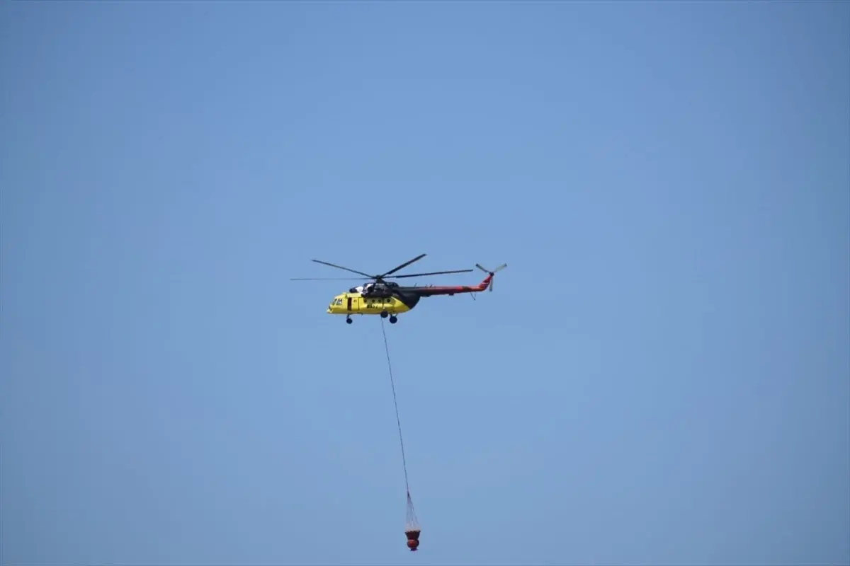 İhbar üzerine bölgeye İzmir Orman Bölge Müdürlüğüne ilişkin 2 uçak, 11 helikopter, 22 arazöz, 5 su ikmal aracı ile 3 dozer sevk edildi.