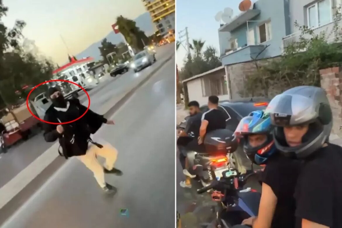 Görüntülerde, silah seslerinin akabinde içerik üreticisinin ve etrafındakilerin büyük panik yaşadığı, maskeli saldırganların ise kaçarken kameraya yakalandıkları görülüyor.