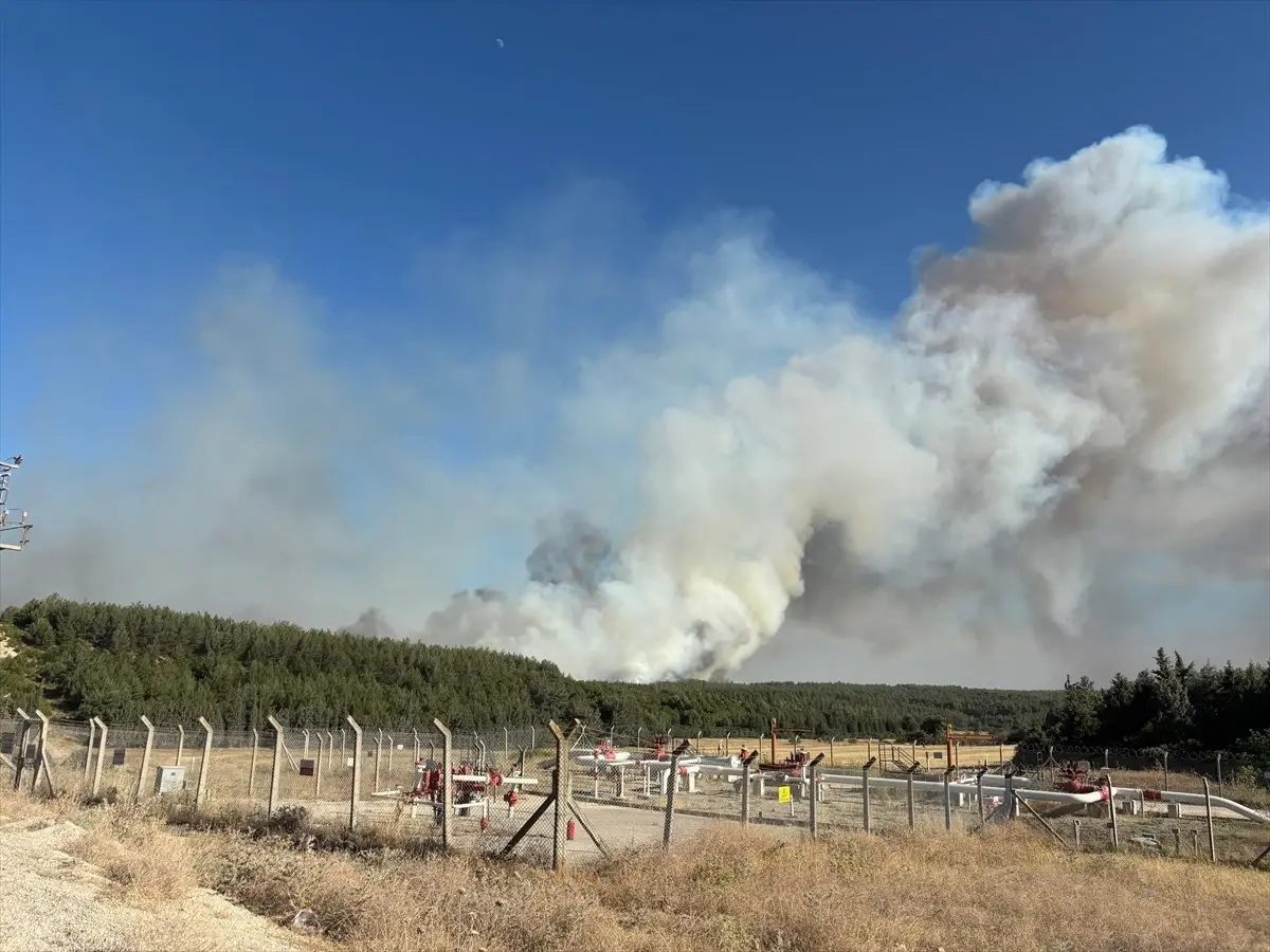İhbar üzerine bölgeye İzmir Orman Bölge Müdürlüğüne ilişkin 3 uçak, 3 helikopter, 16 arazöz, 3 su ikmal aracı ve dozer sevk edildi.
